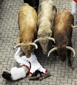 Ik dacht eerst dat het de mansos ("zachtmoedigen") waren. Manso's zijn ossen met een bel om. Die zijn onverstoorbaar, kennen de route en als het goed is gaan die stieren mooi met ze mee op. Als herder had ik ook mansos, gecastreerde rammen dan. Als de schapen niet wilde moven omdat ze met hun kop naar de zon stonden liet ik de manso's lopen en dan gingen ze er achter aan.