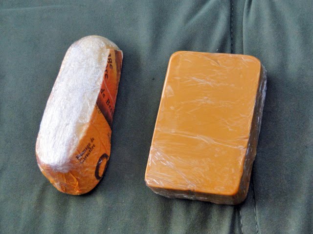 Chaumes op de markt gekocht, links, (voor, over, cq door, dat kan ook, een ovengerecht een dezer dagen) en ook rechts die zoete Noorse kaas, wat ook al weer jaren geleden is...