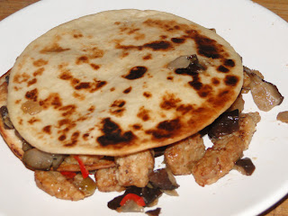 Italiaanse aardappelomelet met ansjovis, met paprika. Room ook nog erdoor. Her-burp, maar goed, vandaag was m'n suiker goed, cholesterol was prima en bloeddruk idem, dus ik kan er weer tegenaan.