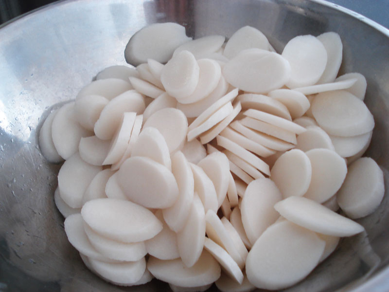 Tofu sticks: sojabonenmeel, water, die melk warm sudderen, krijg je er vellen op, die til je er af en die vouw je op en die droog je.