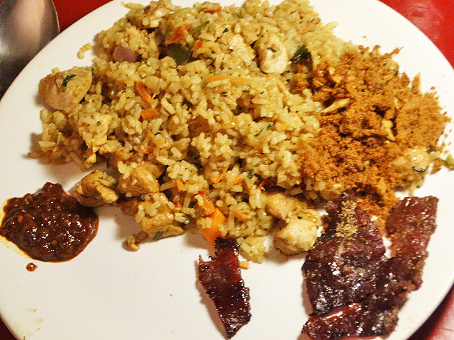 Marineer blokjes varkensvlees (hamlap of blokjes karbonade-vlees) in ketjap manis, iets ketjap asin, citroensap, wat palmwijn of Chinese rijstwijn, wat sambal, gesnipperde ui, geplette knof, gepofte geplette kemiri, geraspte goela djawa, ketoembar, djinten en djahe