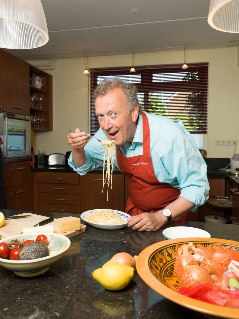 Olijfolie, ui, knof, peterselie, grof gemalen zwarte peper en iets cayenne...